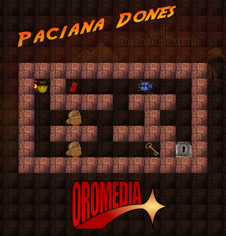 Paciana Dones is a Pacman inspired and Indiana Jones themed maze game. As the player you guide Paciana Dones (Pacman with hat, whip and torch) through Egyptian mazes to collect all keys and find the exit. On the way you have to squash scarabs with your whip, push away or explode rocks with dynamite and escape from spooky mummies. The also shipped map editor enables you to build and play your own intricate mazes.